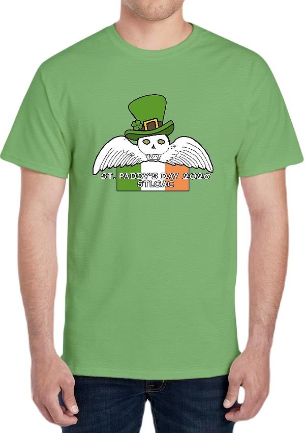 Celebrate St. Patrick’s Day 2026 with the updated St. Louis Gaelic Athletic Club (STLGAC) limited-edition t-shirt! This vibrant unisex triblend in classic green features a fun, iconic, SOL “Skully” spanning his wings proudly over the Irish tricolor flag. Below, bold text reads “ST. PADDY’S DAY 2026 STLGAC” – a fresh twist on last year’s design, perfect for showing your Gaelic pride.