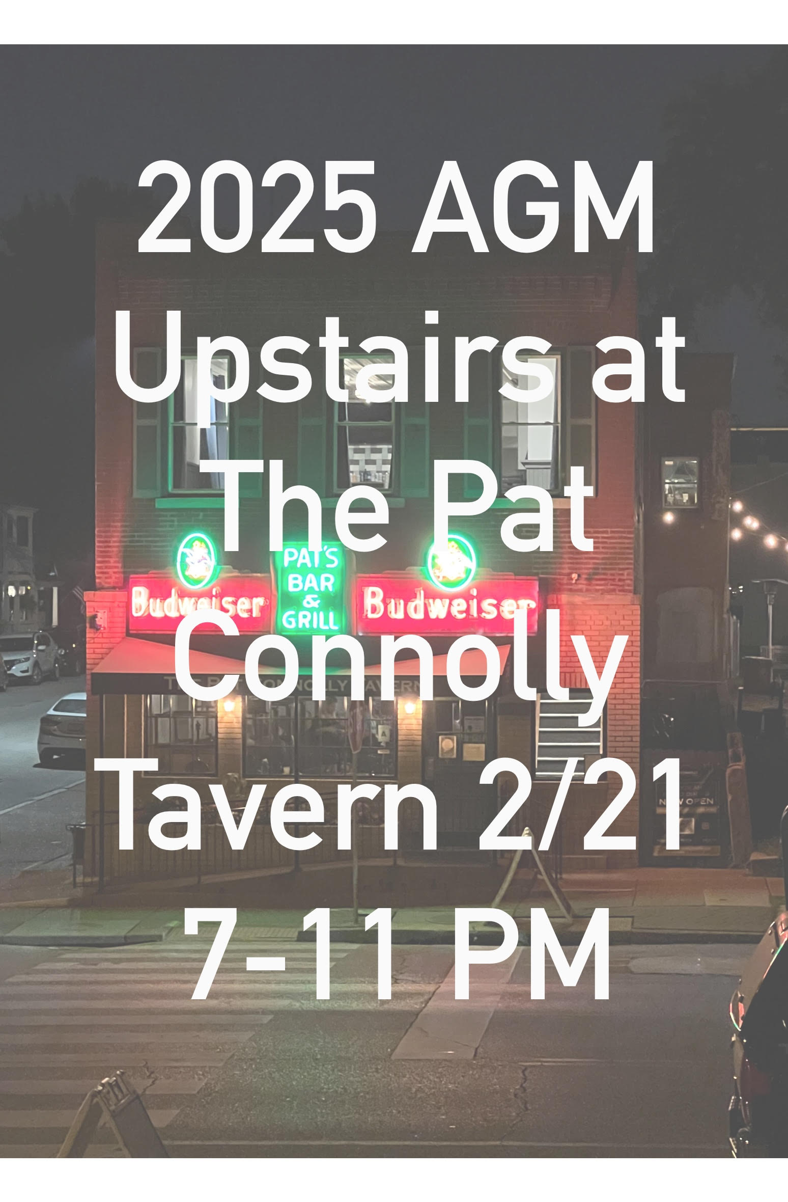 Select$40 Ticket will provide all you can drink draft, cans, soda with 3 appetizers and 2 main options. The event is from 7pm to 11pm at The Pat Connelly Tavern. We will have live music and a short presentation about previous and upcoming club matters!